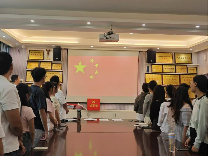 会议第二项,由陈丽同志领誓,支部全体党员重温入党誓词,重忆入党初心。