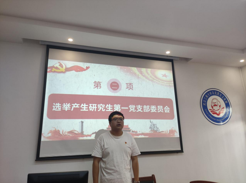 接着,通过无记名投票的方式选举产生了研究生第一党支部委员会。经过现场投票、唱票、计票和监票,陈俊同志当选为支部书记,曹松同志当选为支部副书记,陈明睿同志当选为组织委员,郭铭惠同志当选为纪检委员,闫昊同志当选为宣传委员。