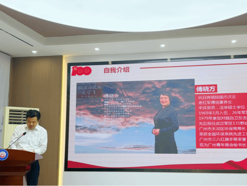 傅晓方老师以“追寻红色记忆 我心永恒”为题,从“建党百年千秋伟业”“两代人的共同信仰”“追寻红色记忆 我心永恒”三个篇章进行主题宣讲,系统地讲解了党的发展历史和革命精神。首先,她从建党的历史背景出发,结合党在重大历史时期的人物和事件,将党史、新中国史和家族革命史、个人奋斗历程紧密结合,沿着党矢志不渝,践行初心使命的百年历程,介绍党从小到大,由弱到强,从苦难走向辉煌的历史,把中国共产党的奋斗历程展现得淋漓尽致。随后,傅老师以“初心使命”为题,讲述了生父段国杰将军和老红军养父母的革命抗战故事,分享了父辈英勇无畏参加长征和西征的经历,以及自己作为一名共产党员传承红色革命基因的历程。她以自己“听着长征的故事长大”的切身感受,充分展现了长征精神的精神内核,引导与会师生更加深刻地认识党的初心使命,深刻领悟“两个确立”的决定性意义。最后她以荣获“光荣在党50年”纪念章的军旅生涯,自身考研的励志奋斗故事,激励我们要深刻认识党的性质、宗旨,坚定听党话、跟党走的理想信念,期望同学们能够将今天的收获转化为实际行动,以更加饱满的热情和昂扬的斗志,为推动党和国家事业的发展贡献自己的力量。