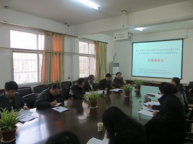 2014年12月30日下午,湖北省教育厅2014年度哲学社会科学研究重大项目“海洋强国背景下中国能源安全战略研究”在学院会议室召开开题报告会。报告会是按照教育厅相关文件要求举行的。