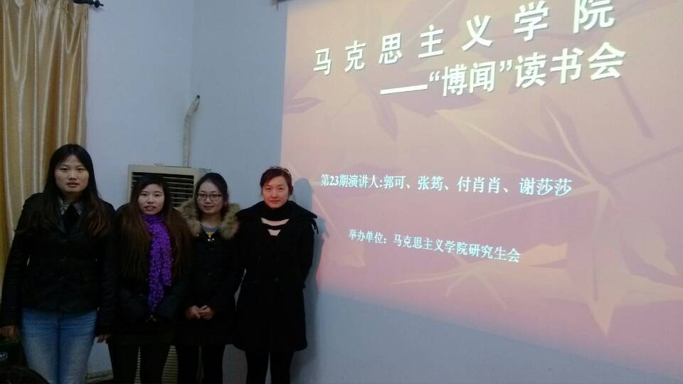 2013年12月26日晚,欧美一级婬片AA片免费“博闻”读书会在学院会议室顺利进行。本期读书会由欧美一级婬片AA片免费学生会主席刘存地、学术部部长付肖肖主持,并组织学院研究生积极参与。本次读书会的主讲人分别是来自我院的付肖肖、郭可、谢莎莎、张筠四位同学,四位同学围绕“十八届三中全会”进行了精彩生动的报告,赢得了在座同学的赞许和掌声。