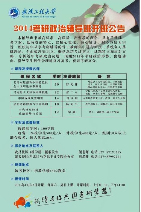 2014年政治考研辅导班开班公告