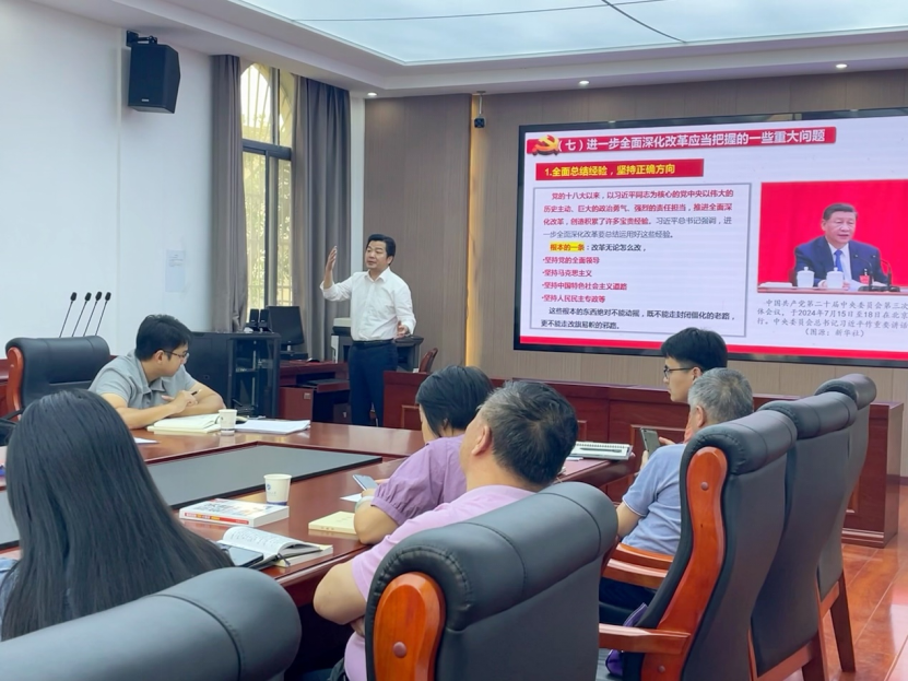 会议第一项,学院院长曹胜亮同志传达学习了党的二十届三中全会精神。他详细讲解了党的二十届三中全会的筹备过程、基本情况,并深入阐述了习近平总书记在会上的重要讲话精神。