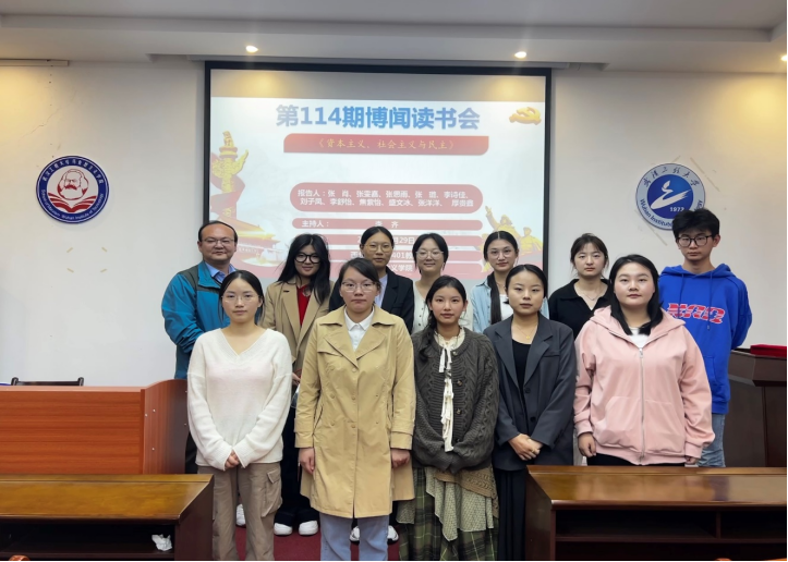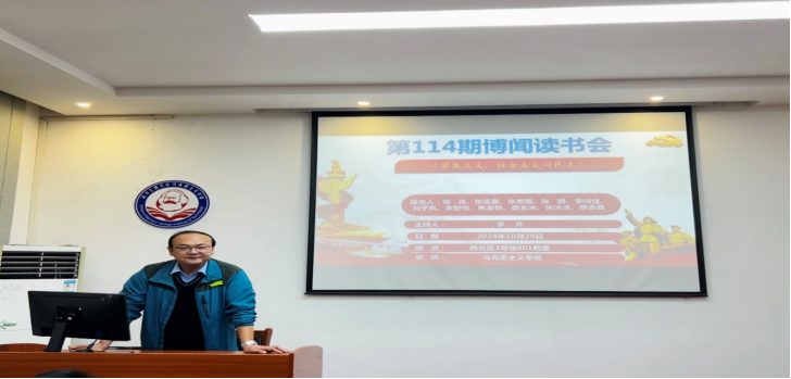 (通讯员:张悦悦) 10月29日晚,我院第114期“博闻读书会”在欧美一级婬片AA片免费一站式学生社区中心(求是楼401教室)顺利召开。本次读书会围绕约瑟夫·熊彼特的代表作之一——《资本主义、社会主义与民主》展开深入讨论。本次读书会由李齐老师主持。出席本次读书会的有欧美一级婬片AA片免费院长曹胜亮、欧美一级婬片AA片免费党委副书记蔡明广,以及11位研究生主讲人:张肖、张雯嘉、张思雨、张璐、李诗佳、刘子凤、李舒怡、焦紫怡、盛文冰、张洋洋、厚贵鑫。院学术部“博闻读书会”活动小组组织了此次读书会。