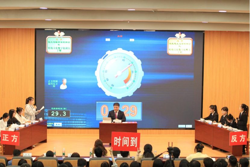决赛场上,正反双方辩手在赛场上展开了激烈交锋。我院“博闻求是”辩论队反方一辩陈丽首先立论:传统文化数字化弊大于利,传统文化不仅仅是知识和艺术的集合,它承载着特定的情感、历史、价值观和身份认同,而数字化则往往削弱了这些复杂的文化层次。其次,反方二辩龚莹针对正方立论进行驳论,旁征博引,妙语连珠,强调传统文化数字化可能带来文化内涵的稀释并指出工具本身没有利弊,但工具在运用过程中存在利弊的价值判断,让观众听得津津有味。随后,反方三辩李盈萱进一步驳斥正方辩手观点,在攻辩和自由辩论环节中,举出大量的数据和事例来论证己方观点,辩之有理,逻辑严密,精彩的表现令人拍案叫绝。最后,反方四辩邹建婷作总结陈词,中华上下五千年,文化底蕴之深厚,从文化的深度和情感传承的丧失,到碎片化与断裂的文化内涵,再到商业化异化与文化传承的危机,数字化的过程往往无法有效保持传统文化的本质与精神,为在场观众展现了出色的辩论风采。