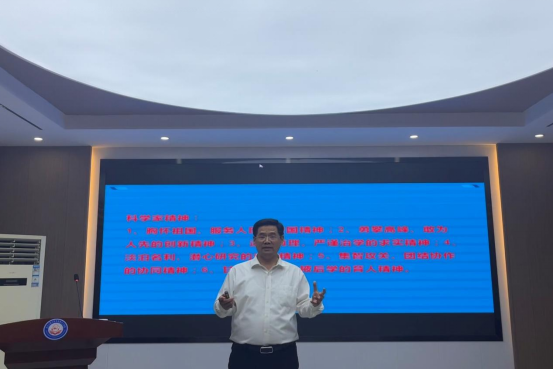 随后,王存文教授阐明创新的内涵,并指出新时代青年需要认真学习以爱国精神、创新精神、求实精神、奉献精神、协同精神、育人精神为核心的科学家精神以及企业家精神。此外,王存文教授强调新时代青年应坚定马克思主义信仰,坚定中国特色社会主义信念,坚定改革开放和社会主义现代化建设信心,具有大局观念与全局意识、机遇意识、问题意识、创新创造能力与执行力,做到“担当起该担当得责任”。