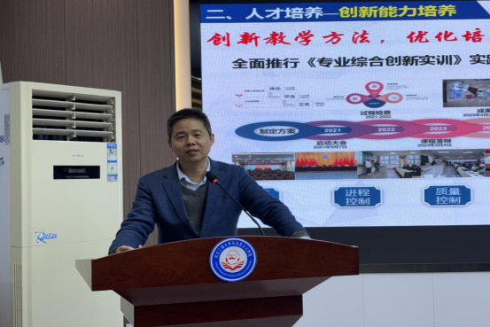 其次,郑教授介绍了武汉工程大学机电工程学院以“大化工”为主线,在研究高效化工过程机械及传热传质、分离过程强化等基础理论和工程应用领域所取得的突出成果。此外,他详细阐述了我校化机专业人才培养定位及理念,展示了我校化机专业显著的育人成果。