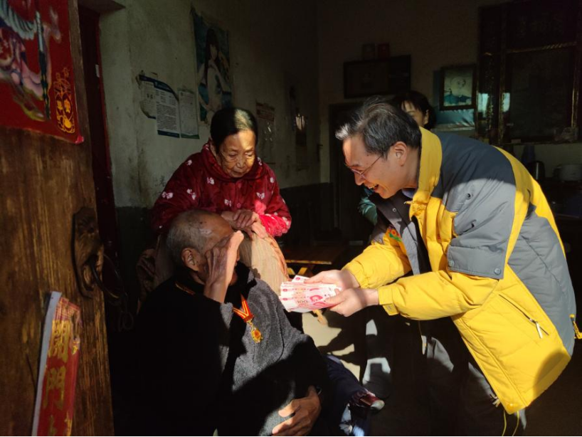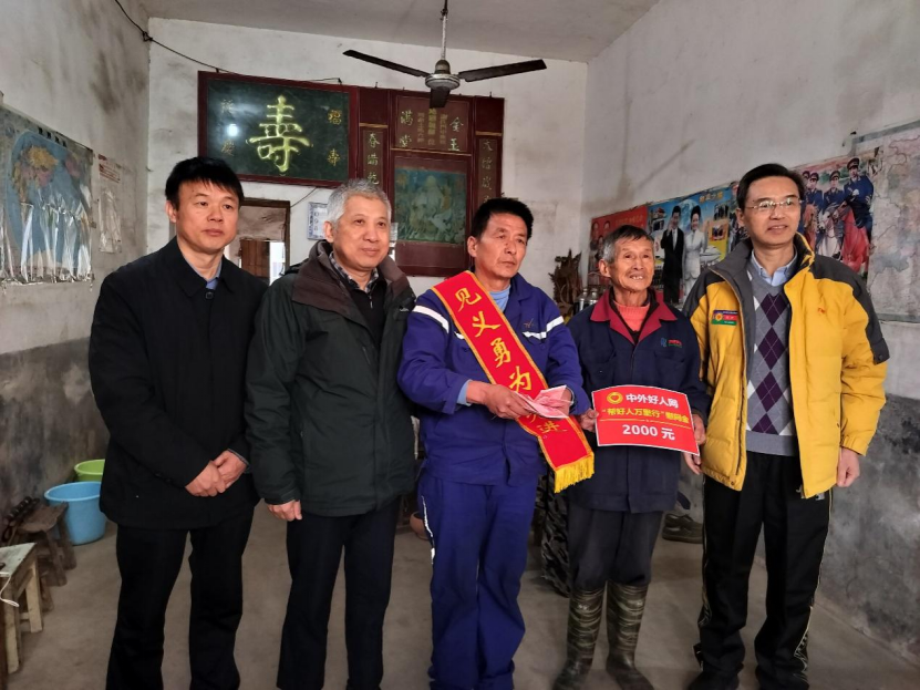 在巴河镇张湖村,慰问团队一行抵达后,会见了生活困难的退役军人张本全。谈方教授代表慰问团队向其递送了慰问金。张本全的妻子深受感动,眼眶泛红,对慰问团队表达了诚挚的谢意。
