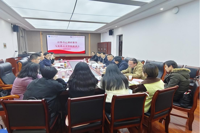 (通讯员:张雪姣)2月20日下午,校党委书记汪伟深入欧美一级婬片AA片免费,调研督导学院2025年度重点工作及标志性项目制定情况。学校党政办公室主任但继恩陪同调研,马克思主义学院领导班子全体成员、教研室主任及教师代表参加了调研座谈会。