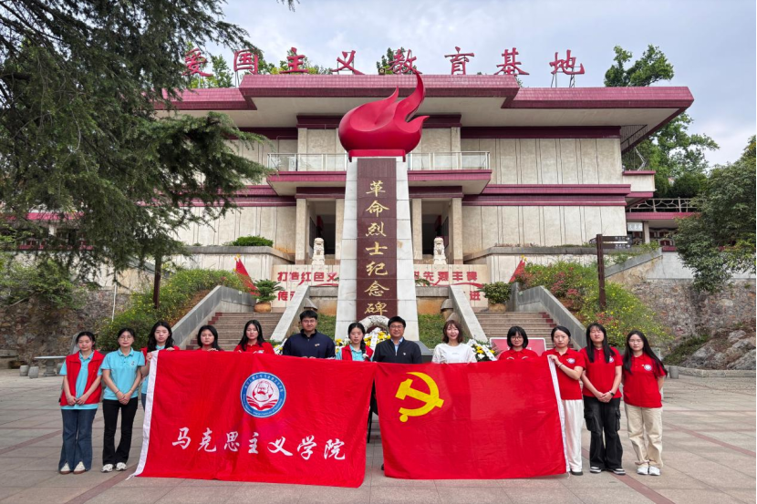 在烈士陵园的露天课堂中,崔晋文老师为师生带来沉浸式思政课。她结合陵园内长眠的1300余位烈士事迹,剖析革命精神与新时代的链接:“从‘救国’到‘强国’,精神内核一脉相承。今天的青年要做的,是将个体奋斗嵌入民族复兴的坐标系。”团委书记汪喆伦则从“知行合一”角度,号召学生将爱国情怀转化为创新实践:“先烈用生命诠释信仰,我们要用行动续写答卷。”