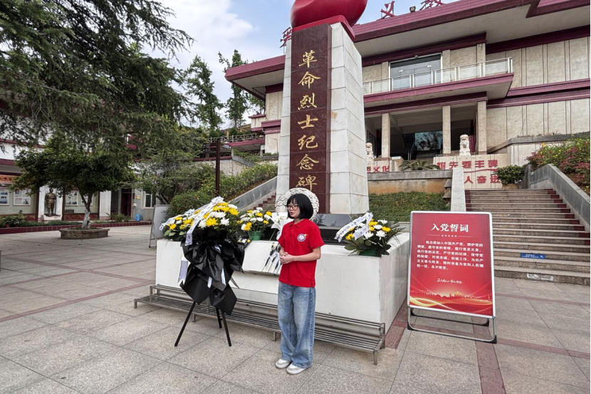 宣讲团学生代表汪立旭、焦紫怡、赵芽以青年之声,讲述了九峰烈士陵园的历史脉络与英烈事迹。烈火中三进火场救人的李道洲、为保护群众英勇牺牲的邱建军……鲜活的故事穿越时空,在陵园内激起阵阵回响。学生赵芽动情地说:“烈士的日记里写着‘愿以吾血浇吾地’,今天的我们更需以青春守护这片热土。”宣讲团成员将历史档案转化为情感共鸣,让英雄形象从课本走入现实。