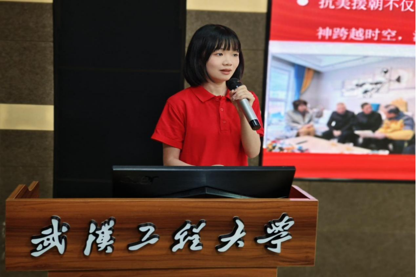 宣讲团成员赵芽以“塔松静默,岁月长青—时间里的生命赞歌”为主题,以“帮好人万里行”活动中的实地走访慰问经历为线索,生动形象地向大家展现了抗美援朝老兵和见义勇为勇者的感人故事。这些英雄人物及其事迹横跨不同领域,彰显了伟大的精神品质,每个人在传承英雄精神中都扮演着重要角色。最后,赵芽从感悟传承的角度出发,提出铭记英雄事迹、传承英雄精神的倡议,呼吁大家以英雄为榜样,为实现中华民族伟大复兴的中国梦贡献力量。