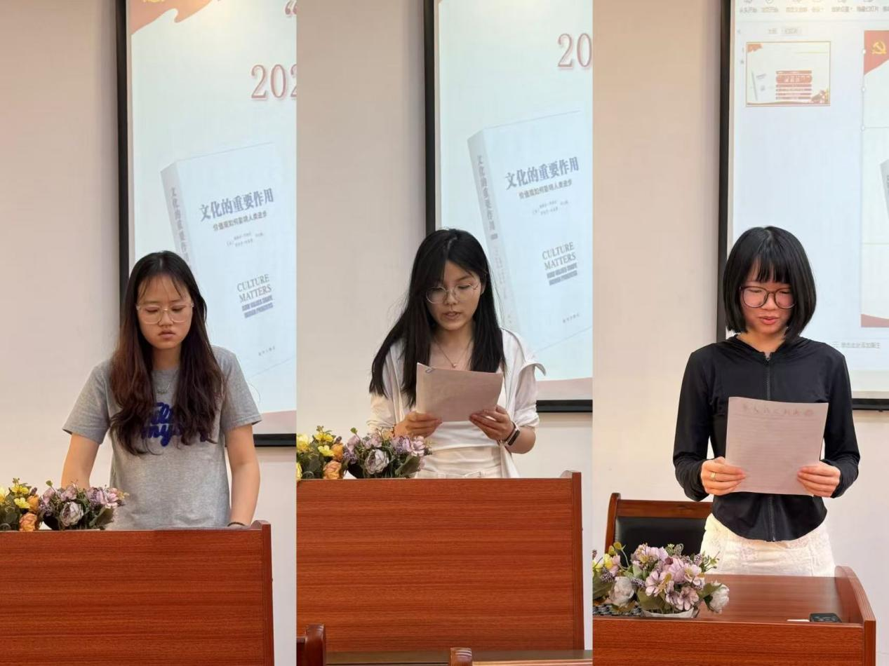 桂颖萍同学讨论了塞缪尔·亨廷顿关于文化对经济发展的重要作用的观点,通过书中多个案例分析了文化价值观如何影响经济繁荣,强调了文化变革对国家实现跨越式发展的重要性,并呼吁在全球化背景下,各国应珍视本土文化,同时开放包容地吸收外来文化精华,共同促进全球经济文化的繁荣。葛明悦同学总结了书中“文化与政治发展”章节的核心内容,探讨了文化对政治发展的深远影响,指出民主政治文化可以促进政治良性循环,而专制政治文化则会阻碍政治发展。并在最后强调了在全球化背景下文化与政治协调发展的重要性。赵芽同学解读了塞缪尔·亨廷顿的“文明冲突论”,强调了马克思主义文明观的重要性,指出文明差异源于发展不平衡。
