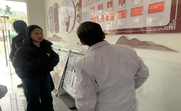为了深入了解大学生村医扎根基层的情况,实践团来到了五峰土家族自治县仁和坪镇乡镇卫生院,在这里见到了大学生村医彭业旭。访谈中,彭医生告诉实践团,她是当地第一批定向委培的大学生村医,入职至今已有 9 个年头。由于表现出色,如今她已被提拔到乡镇卫生院公共卫生科担任科长。 陪同调研的五峰土家族自治县卫健局公共卫生科副科长吴劲松表示,像彭业旭这样愿意扎根基层的大学生村医,已不再是少数。“实践团在调研中发现,早在 2014 年,五峰县党委、县政府便响应中央号召,全面聚焦‘两不愁三保障’卫生健康领域,先行启动大学生乡村医生培养工程,率先实现‘一村一名大学生村医’的目标。截至目前,已累计培养大学生村医 113 名。”
