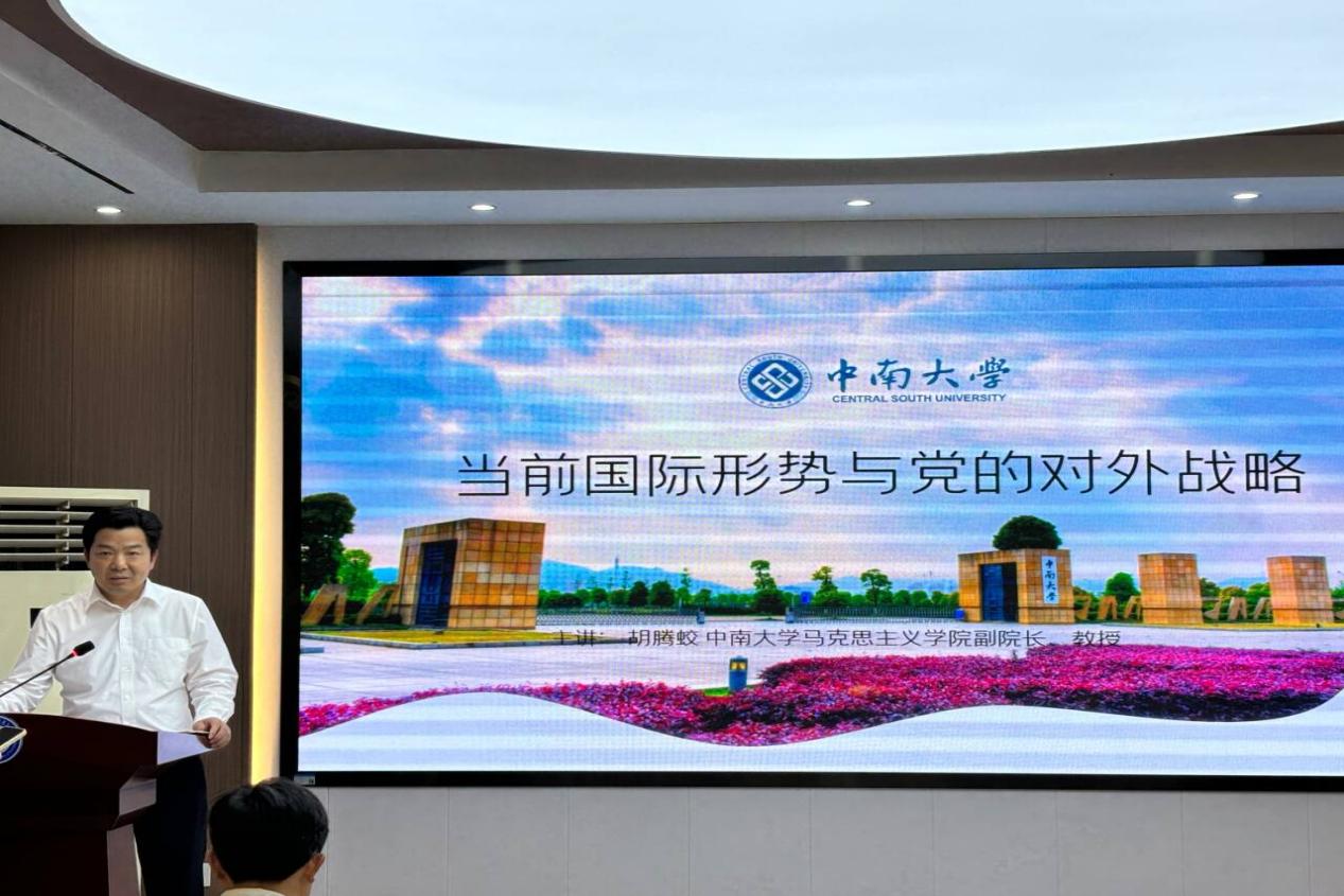 本网讯(通讯员 刘欣 王芸歌)6月18日下午,中南大学欧美一级婬片AA片免费副院长胡腾蛟教授应邀作客我院第91期“求是论坛”,并作题为“当前国际形势与党的对外战略”的专题讲座。本次讲座由学院院长曹胜亮教授主持,学院全体教师及2023级、2024级研究生参加本次讲座。