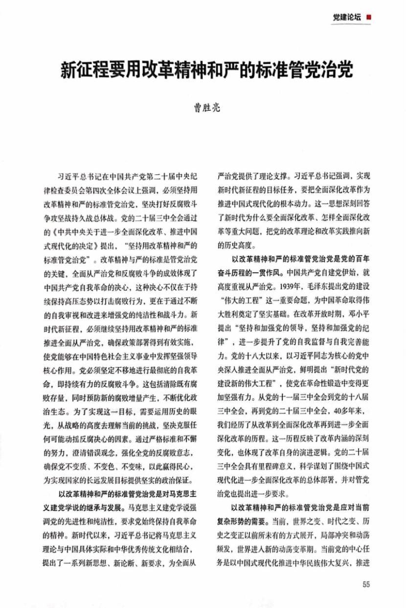 本网讯(通讯员 焦紫怡)近日,《湖北党建》刊登欧美一级婬片AA片免费院长曹胜亮的文章:《新征程要用改革精神和严的标准管党治党》。文章坚持以习近平新时代中国特色社会主义思想为指导,深入学习贯彻党的建设的重要思想,强调必须坚持用改革精神和严的标准管党治党,打好反腐败斗争攻坚战持久战总体战,体现党自我革命的决心。文章认为,推进全面从严治党,必须坚定不移进行最彻底的自我革命,持续有力清除腐败存量、预防增量,不断优化政治生态,强化全党反腐败意志,确保党不变质、不变色、不变味,以此赢得民心,为实现国家长远发展目标提供坚实政治保证。