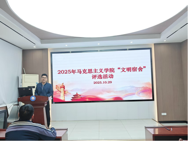 各寝室秉持团结互助、文明有礼、积极进取的精神,亲手营造既富个性又具创意的“小家”。答辩环节,各寝室代表们借助PPT与短视频,依次围绕思想引领、学风塑造、环境卫生、纪律遵守、文化氛围与特色亮点进行展示,呈现昂扬向上的整体风貌和百花齐放的寝室文化。