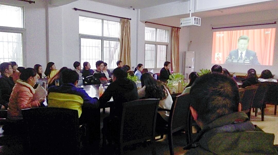 10月18日9:0-12:35,欧美一级婬片AA片免费二楼会议室济济一堂,师生们聚精会神地观看着中央电视台现场直播的十九大开幕式,认真聆听了习近平总书记的报告。上午没课的学院领导、教职工20人、研究生25人共计45人参加了集中收看活动。
