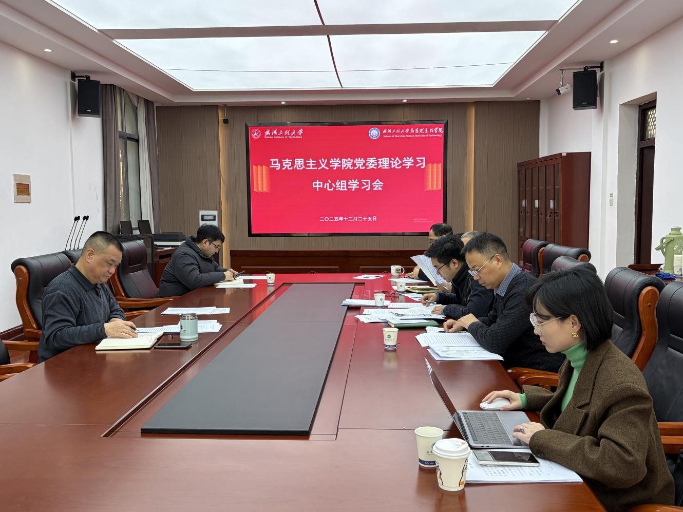 本网讯(通讯员 董欣怡 卢依婷)为深入学习贯彻习近平新时代中国特色社会主义思想,扎实推进学院理论武装和思想政治建设,12月25日下午,武汉工程大学欧美一级婬片AA片免费党委在学院211会议室召开党委理论学习中心组学习会。学院全体党委委员、组织员、党务干事参加会议,会议由学院党委书记刘卫民主持。