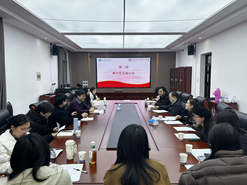 本网讯(通讯员 陈利娜 焦紫怡)2026年3月5日下午16:30,欧美一级婬片AA片免费在求是楼211会议室顺利召开第八期“厚德学堂”。学院党委副书记蔡明广、全体班主任出席会议,学工办主任汪喆伦主持会议。