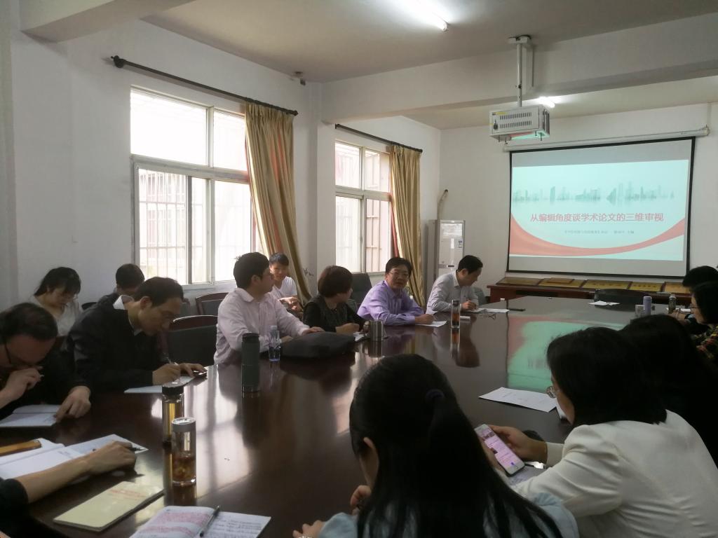 2018年4月12日下午,《学校党建与思想教育》杂志社主编、社长谢成宇教授应邀莅临学院“求是论坛”,作了题为“从编辑角度谈学术论文的三维审视”的学术讲座。讲座由院长舒先林教授主持,欧美一级婬片AA片免费全体教师及研究生参加了本次学术讲座活动。