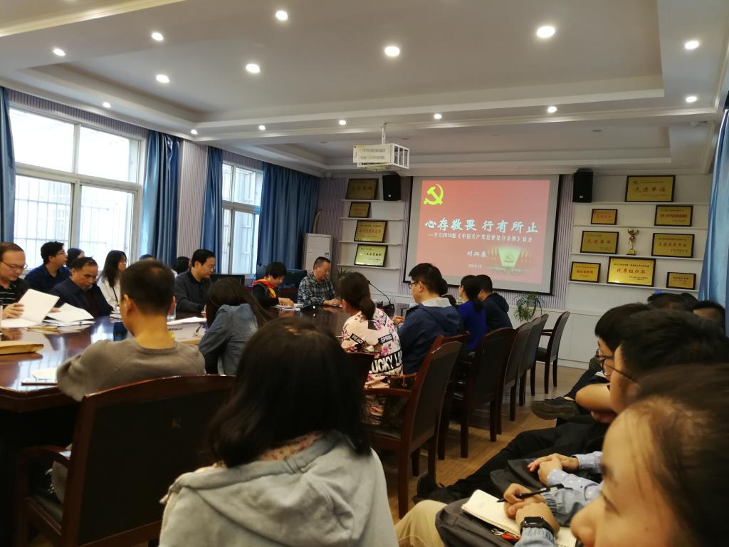 刘炳春书记以“心存敬畏行有所止”为题,从党纪新禁区、条条带电、每条背后都有鲜活案例,铁的纪律是对党员干部最大爱护,心存敬畏、行有所止三个部分对2018版《中国共产党纪律处分条例》进行了解读。他着重讲了政治纪律、组织纪律、廉洁纪律、群众纪律、工作纪律、生活纪律六个方面的二十三个禁区。刘书记的报告深入浅出,内容丰富,让全体参会的党员深刻理解了《中国共产党纪律处分条例》,明白了纪律是党的生命,常念纪律的“紧箍咒”,就是攥紧了平安的“护身符”。