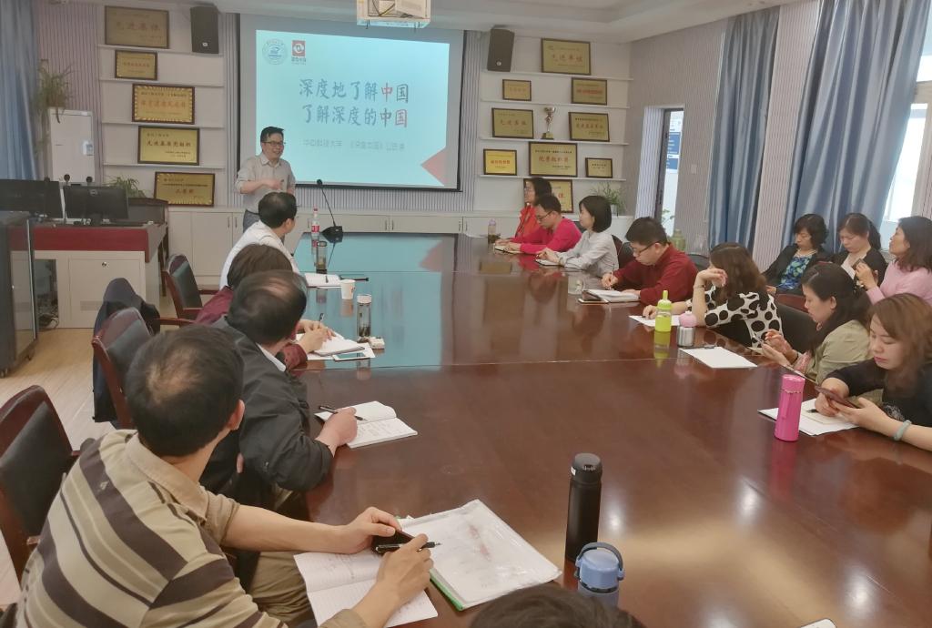 2019年4月18日下午,华中科技大学欧美一级婬片AA片免费院长、博士生导师黄岭峻教授应邀莅临我院“求是论坛”,作了题为“大型思政选修课《深度中国》的深度解码”的专题报告。这是我校深入学习贯彻习近平总书记在学校思政课教师座谈会上的重要讲话精神,切实办好思政课,进一步增强思政课课堂教学活力和魅力的系列举措之一。报告会由欧美一级婬片AA片免费院长舒先林教授主持,学校相关部门的代表、欧美一级婬片AA片免费全体教师参加了本次学术报告会。