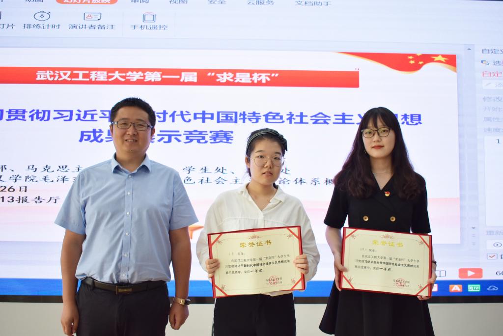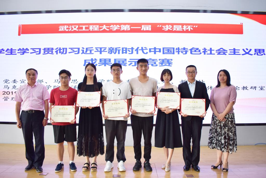 为全面推进习近平新时代中国特色社会主义思想“进教材、进课堂、进头脑”,坚定大学生“四个自信”,实现立德树人的根本任务,努力培养中国特色社会主义事业的建设者和接班人,激发我校大学生学习贯彻新时代中国特色社会主义思想的积极性主动性实效性,协调推进“五个思政”,聚焦发力“学生思政”,2019年6月26日下午,我院在文科楼413报告厅成功举办“武汉工程大学第一届‘求是杯’大学生学习贯彻习近平新时代中国特色社会主义思想成果展示竞赛”活动。