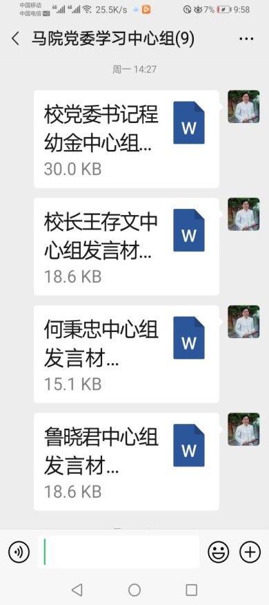 (通讯员延飞)3月2日下午和晚上,欧美一级婬片AA片免费利用微信群召开院党委理论学习中心组(扩大)学习线上交流会,会议由院党委书记舒先林主持。本次交流会专题学习了习近平总书记在2月23日召开的统筹推进新冠肺炎疫情防控和经济社会发展工作部署会议、2月26日召开的中共中央政治局常务委员会会议上的讲话精神,并结合当日上午学校党委理论学习中心组(扩大)学习网络会议上学习资料和4份发言材料,特别是程幼金书记的总结发言和王存文校长的中心发言。在将近7个小时的学习交流时间内,中心组成员以“超时空”方式在线上交流了各自的学习感悟和收获。