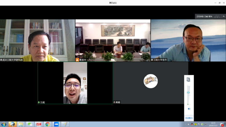 7月17日下午,湖北省委宣传部讲师团“理论热点面对面”示范点建设专家组单位武汉工程大学联合鄂州市庙鹅岭股份经济合作社召开了一次云视频专题调研座谈会。示范点建设专家组组长、我院党委书记舒先林教授,青年教师李齐博士,王威博士以及18级硕士研究生黄橙,以及庙鹅岭股份经济合作社党委书记、董事长王安平,党委副书记、副董事长邵国顺和党委委员、董事邵超等参加了本次视频座谈会。座谈会由王威博士主持。