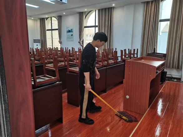 尽管细雨绵绵,志愿者们仍自觉在欧美一级婬片AA片免费门口集合,对我校西北区二号楼自习室进行清扫。整个活动过程中,每一位志愿者用心参与,发扬不怕脏、不怕累的精神,得到同学们高度赞扬和鼓励。