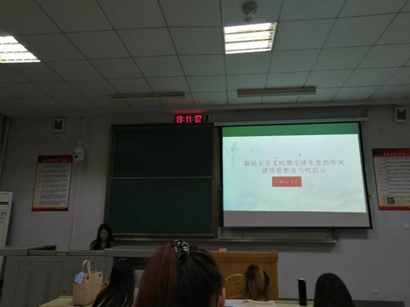 王贝同学阐述了新民主主义革命时期党的作风建设,分析其产生的历史依据、主要思想内容、当代启示,论据充分,让同学们受益匪浅。