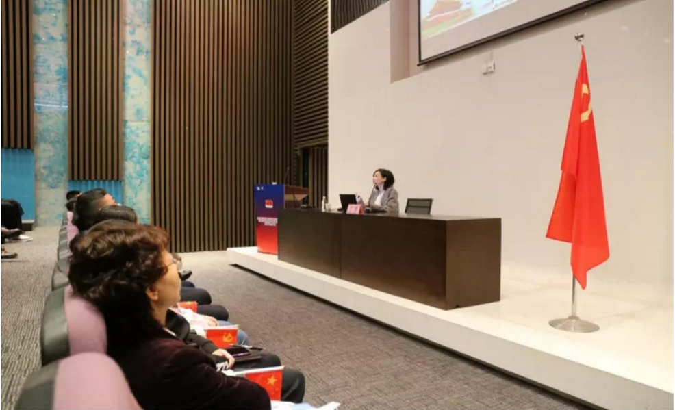 会议由三大议程组成,在进行了“党史学习互动展”和“建党100周年活动”启动仪式——园区党员宣誓仪式,综合党委书记刘励力主题讲话两项议程后,我院教师兰洁博士为园区党员干部作了“从‘四史’学习看中国共产党党史党建与反腐倡廉”的主题报告。