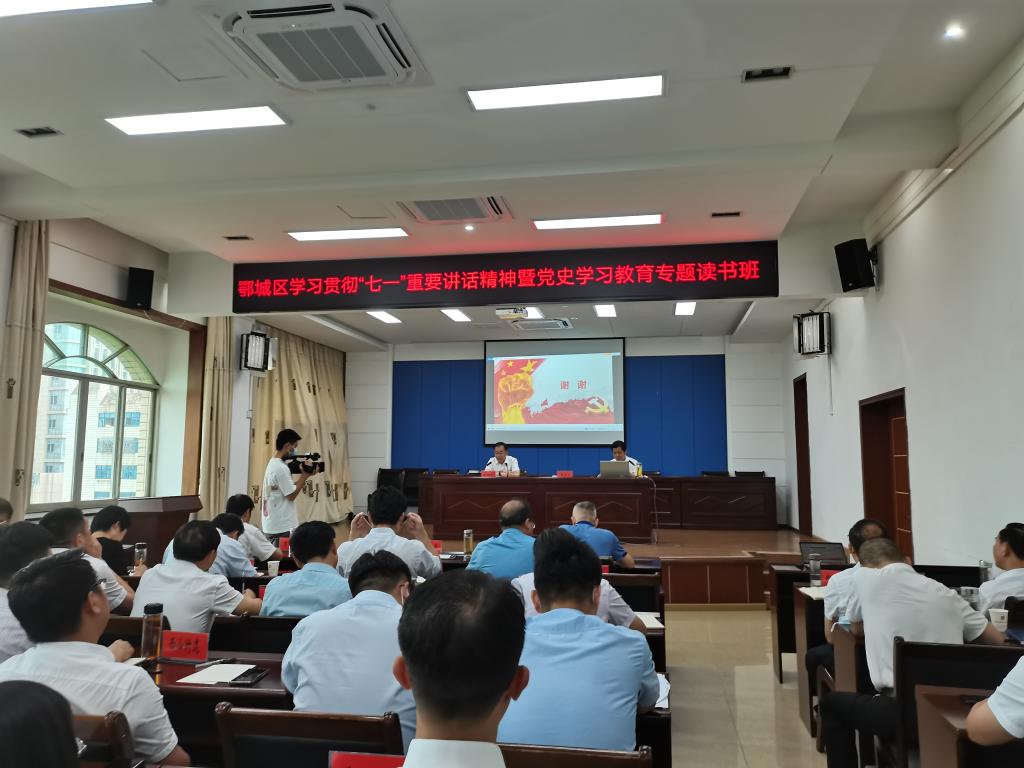 (通讯员钟佩)为深入学习贯彻习近平总书记在庆祝中国共产党成立100周年大会上的重要讲话精神,推动党史学习教育走深走实,2021年7月13日上午,我校理论热点面对面示范点建设专家组组长欧美一级婬片AA片免费院长曹胜亮教授应邀出席鄂城区委理论学习中心组(扩大)学习贯彻“七一”重要讲话精神暨党史学习教育专题读书班开班式,并作党史专题辅导报告。本次读书班开班式在区委六楼会议室举行,参加学习有区“四大家”领导,法检“两长”,区人武部政委,各镇(街、开发区)党政主职和区直各部门主要负责同志。鄂州市鄂城区区委书记、区长董国平主持并讲话。
