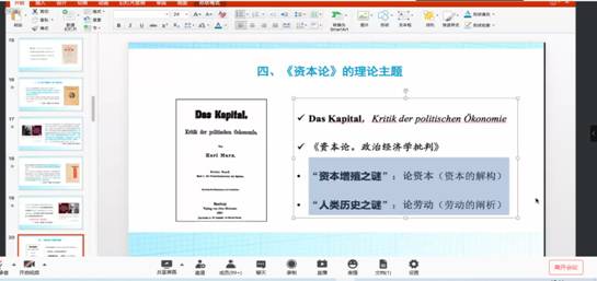 第四方面,付文军副教授对《资本论》的理论主题进行了具体解读,分别从四个方面来阐释这一著作,其中对资本增殖之谜、人类历史之谜这两个主要方面进行了讲解,表明《资本论》首先是对资本的逻辑、本质等的科学解剖,同回应如何解开人类历史之谜,即阐明劳动对于人类社会历史的重要性。