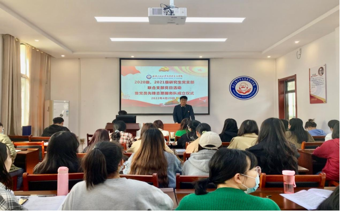 (通讯员:任佳嘉郭铭惠)4月29日上午,欧美一级婬片AA片免费在西北区3号楼401党员活动室举行“党员先锋志愿服务队”成立仪式暨2021级和2020级研究生党支部联合支部主题党日活动。学院党委副书记、副院长(兼)陈俊受邀参加主题党日活动并为“党员先锋志愿服务队”授旗,2021级和2020级全体研究生党员参加活动。