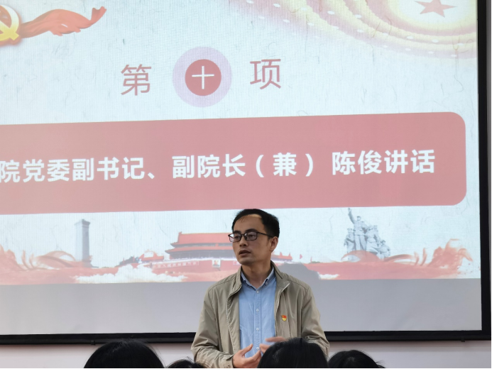 最后,学院党委副书记、副院长(兼)陈俊结合自己的入党经历和履职阅历围绕“如何做一名合格党员”与大家分享了几点意见:一是要旗帜鲜明讲政治。要胸怀两个大局,心怀国之大者,不折不扣的贯彻执行党中央的决策部署;二是要毫不动摇讲信仰。作为欧美一级婬片AA片免费的研究生,要带头坚定马克思主义信仰和中国特色社会主义信念,自觉做马克思主义的忠实信仰者和模范践行者;三是要矢志不渝讲初心。要时刻铭记党员的义务与责任,坚持为人民服务,积极投身“战疫”志愿者服务一线,崇德向善,乐于助人,从小事做起,从身边事做起,把有限的生命投入到无限的为人民服务中去。四是要大事难事讲担当。要立志做搏击风雨的海燕,不做石缝中的寒号鸟。在大事面前要挺身而出,在关键时刻冲得上去,不负时代,点燃小我,绽放青春芳华。五是要持之以恒讲纪律。作为学生党员要严格要求自己,自觉遵守党纪党规、校纪校规,尤其在当前疫情常态化防控期间,党员同志更要身先士卒、率先垂范,影响和带动身边更多的人正确理解“动态清零”总方针,坚决支持常态化疫情防控举措,自觉遵守各项疫情防控规定,共同筑牢校园安全屏障,用无疫平安校园喜迎建校50周年。(审稿:陈俊)