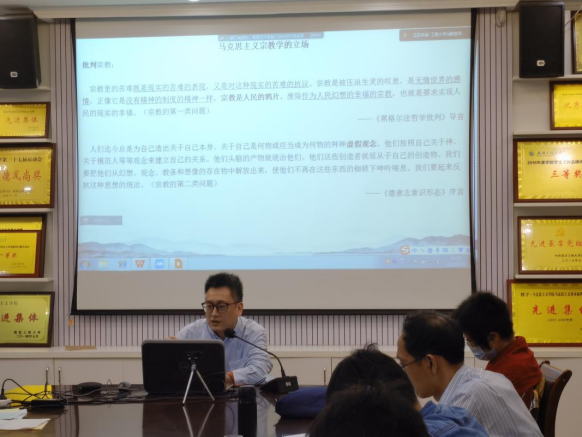 漆志超博士以文化竞争与文化安全为视角,就“我国意识形态安全”中的宗教问题作了题为《马克思主义宗教学的历史任务》的讲座。从“建设马克思主义宗教学的重要性”,“世界三大宗教简介”,“我国宗教工作的总体方针”以及“反邪教与反宗教渗透的长期斗争”四个部分进行讲解,强调了要以马克思主义宗教观为指导,加强宗教活动的法治化管理,严厉打击邪教组织和宗教渗透活动。