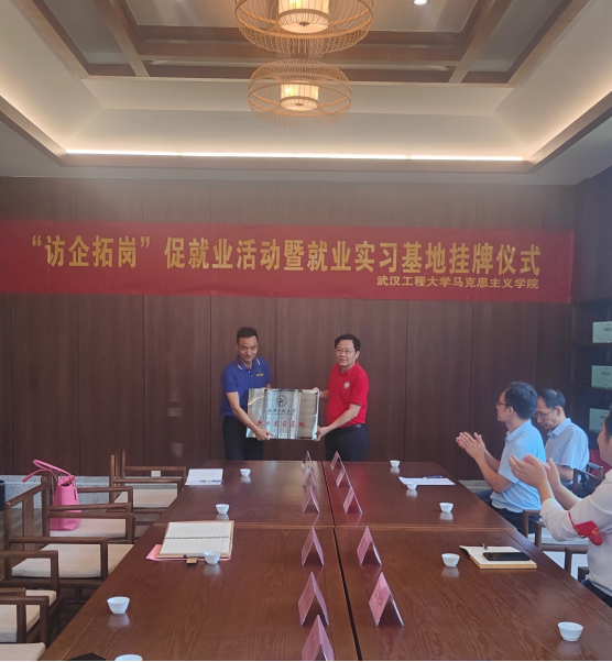 随后,双方在愉悦的交谈和热烈的掌声中进行了就业实习基地挂牌仪式,学院党委书记舒先林向公司董事长肖德雄进行授牌。最后,双方一致表示,希望今后在企业文化品牌提升和实践育人平台建设等方面进一步搭建桥梁、扩大交流、深化合作,共同开创校企合作新局面。(审稿:陈俊)
