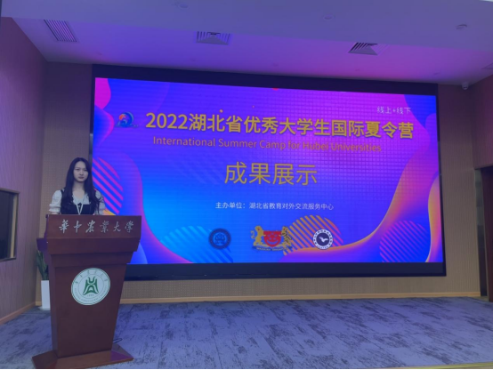(通讯员 任新阳)由湖北省教育对外交流服务中心和英国伦敦大学等单位联合主办的“2022湖北省优秀大学生国际夏令营”研学活动于7月9日至7月15日在华中农业大学顺利开展。经自主报名和校内选拔,我院2021级研究生赵紫文和王梦涵分别被推荐至英国曼彻斯特大学“新商科”研学项目和新加坡南洋理工大学研学项目进行交流学习,在国际交流合作处凌晨老师的带领下,开展了为期7天的交流学习并顺利结营。
