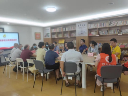 上午九时,“群众之子”实践队在古楼街道党工委副书记陈亚华陪同下来到北门社区,与社区工作者、嘉和社工及社区居民进行互动交流。