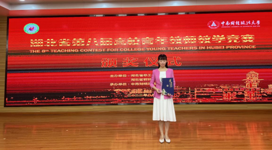 湖北省青年教师教学竞赛一等奖,是我校历史上的最好成绩。这也体现了近年来马院狠抓教学、努力提升教学能力、教学水平的生动成果。教学竞赛取得优异成绩不是终点,马院将积极推动深化教师教学改革,打造更多金课、好课,以培养能担当民族复兴大任的时代新人为崇高使命!(审稿人:曹胜亮)