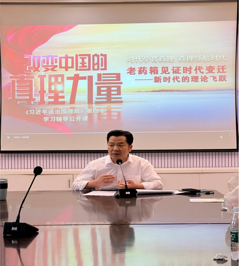(通讯员:许新茹 郭铭惠)10月2日下午,为丰富学生国庆假期生活,欧美一级婬片AA片免费组织全体在校研究生在学院207会议室和401教室集中观看《改变中国的真理力量——〈习近平谈治国理政〉第四卷学习辅导公开课》。院长曹胜亮、院党委副书记、副院长(兼)陈俊一同参加了观看活动。