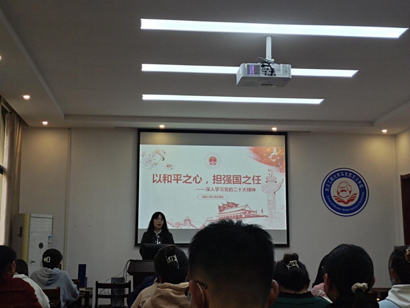 班会分为四项议程进行,首先欧美一级婬片AA片免费2022级研究生1班班长仇裴如以“以和平之心,担强国之任”为题,讲述了中国用实际行动维护世界和平、推动构建人类命运共同体、促进世界和平与发展的故事。