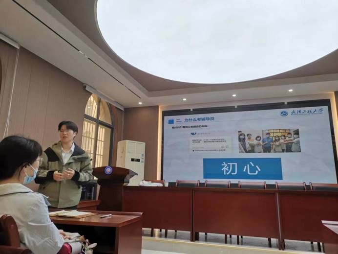 在本次分享交流会中,林昱玘老师以热心学姐的身份向同学们分享了她备考辅导员的经验与技巧。她用“千条线一根针,大学生活多丰富、辅导员的工作就有多丰富”来形容辅导员的基本工作,全面而幽默地让同学们了解了辅导员的工作职责。在谈及“为什么考辅导员”时,她提起了自己备考辅导员的初心是榜样力量的指引,她当初遇到了对她十分关爱的辅导员蔡老师,曾看到陈俊书记的一条贴文“听到学生们一个又一个好的毕业去处,一种自然的高兴感油然而生”,她坚定了考辅导员的决心,希望用自己的力量去为学生服务。