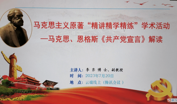 (通讯员:沈洁)7月20日,欧美一级婬片AA片免费2023年暑期马克思主义原著“精讲精学精练”学术活动第一讲在腾讯会议顺利举行,本次活动由李齐副教授主讲,学院全体研究生参加了本次学术活动。此次活动的主题为“马克思、恩格斯《共产党宣言》解读”。