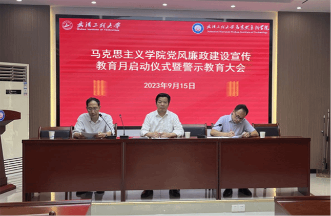 院党委副书记、纪检委员(兼)陈俊解读了《2023年武汉工程大学党风廉政宣传教育月活动方案》,并对学院下一步的党风廉政建设工作具体内容作出安排部署。