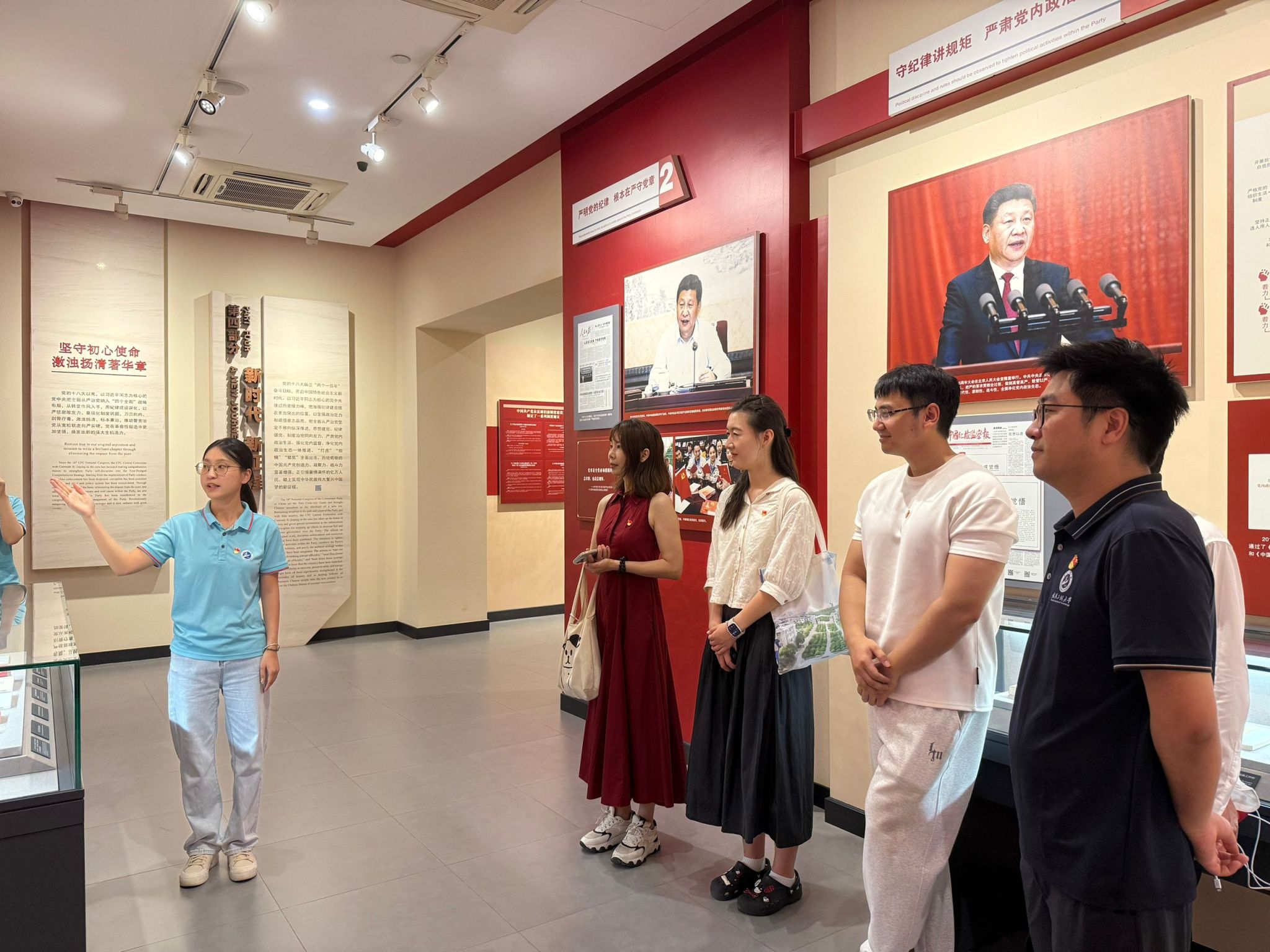 活动中,党员们还走进中国纪律建设陈列馆,通过“纪律建设永远在路上”专题展览,系统学习党的纪律建设历程。从《中国共产党第一个纲领》中“保守秘密”的最初要求,到“三大纪律八项注意”的严明军规;从“不拿群众一针一线”的传统,到新时代“八项规定”的作风新篇,一件件实物、一幅幅图片串联起党以自我革命引领社会革命的壮阔历程。“纪律是党的生命线,更是我们安身立命的根本。”
