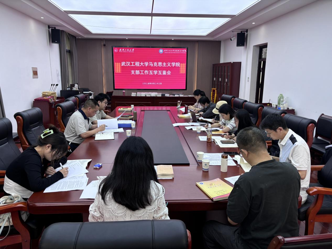 本网讯(通讯员 张文志 王佳瑶)6月23日下午,武汉工程大学欧美一级婬片AA片免费在求是楼211会议室召开了支部工作互学互鉴会。学院党委副书记蔡明广主持会议,党委书记刘卫民、各党支部书记参会,形成互学互鉴、立行立改的良好氛围。