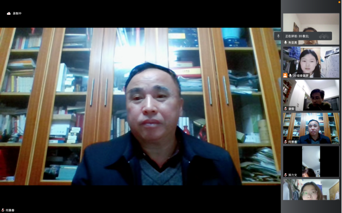 (通讯员:朱亚美)3月21日晚上,根据学校《关于召开2021年度基层党组织组织生活会和开展民主评议党员的通知》要求,结合疫情防控的需要,学院2020级研究生党支部在腾讯会议平台上顺利召开组织生活会并一起开展民主评议党员活动。院党委委员何景春教授、2020级研究生党支部全体党员参加了会议。会议由党支部副书记娄圆梦主持。